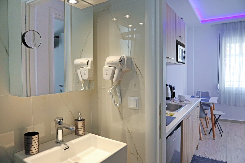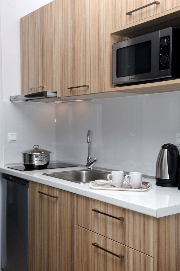 Στο δωμάτιο υπάρχει κουζίνα με όλα τα απαραίτητα  σκεύη για να μπορέσετε να παρασκευάσετε το γεύμα σας. Η κουζίνα διαθέτει εστίες μαγειρέματος, φούρνο μικροκυμάτων, ψυγείο, απορροφητήρα, καφετιέρα, τοστιέρα, βραστήρα καθώς και υλικά